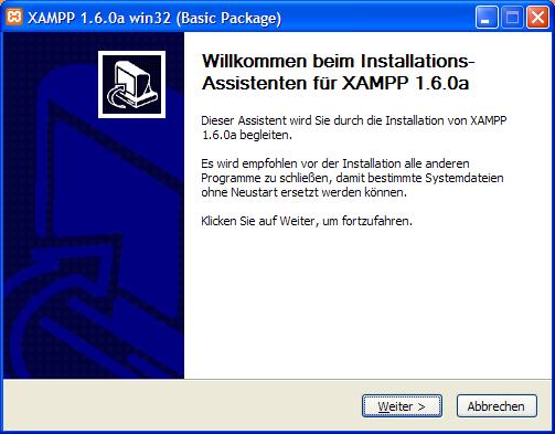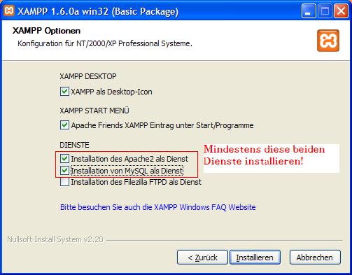 Download des Pakets XAMPP von http://www.apachefriends.org/de/xampp-windows.html (mit Installer)