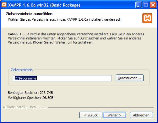 Auswahl des Zielverzeichnisses (meine nachfolgenden Pfadangaben orientieren sich an der Standardvorgabe):
